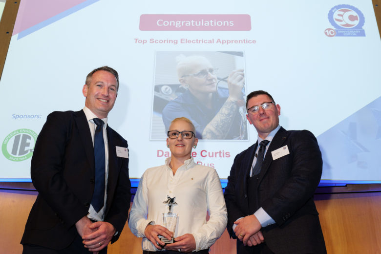 Awarding the trophy for the top electrical apprentice to Daphne Curtis from First Bus at the ceremony, Imperial Engineering’s Sales Director, John Dwight (pictured left), commented: