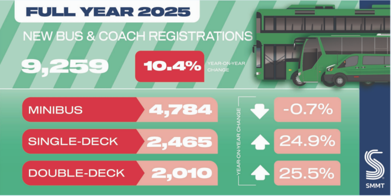 The UK bus and coach sector is experiencing a powerful resurgence, with new vehicle registrations reaching their highest level in 17 years. Overall, registrations of buses, coaches and minibuses grew 10.4% in 2025 to reach 9,259 units, delivering the best performance since 2008, according to the latest figures from the Society of Motor Manufacturers and Traders (SMMT).